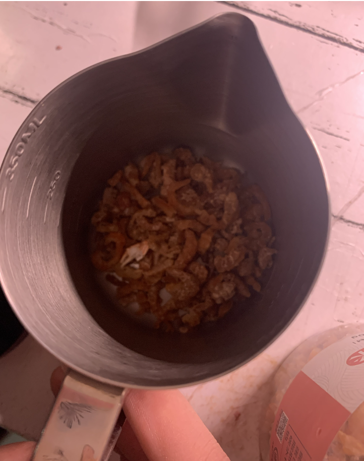 虾米是很便宜的,但是要注意在超市不要买散装虾仁的堆栈表面的,因为栈顶的虾仁很容易掉地上然后被人捡起来扔回去~