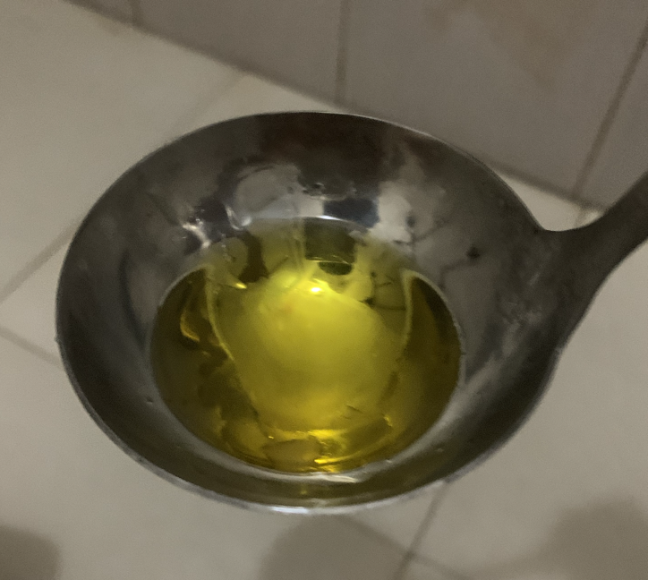 4. 加虾米盐油白菜水,继续煮到白菜煮到烂出汁,也就是粥汁开始显绿